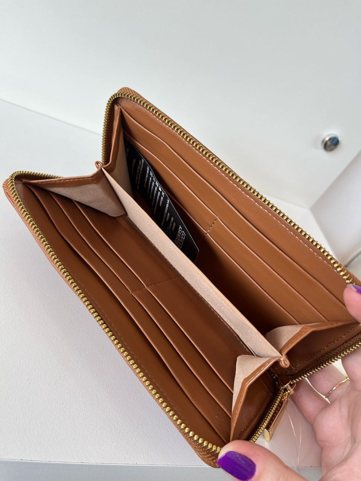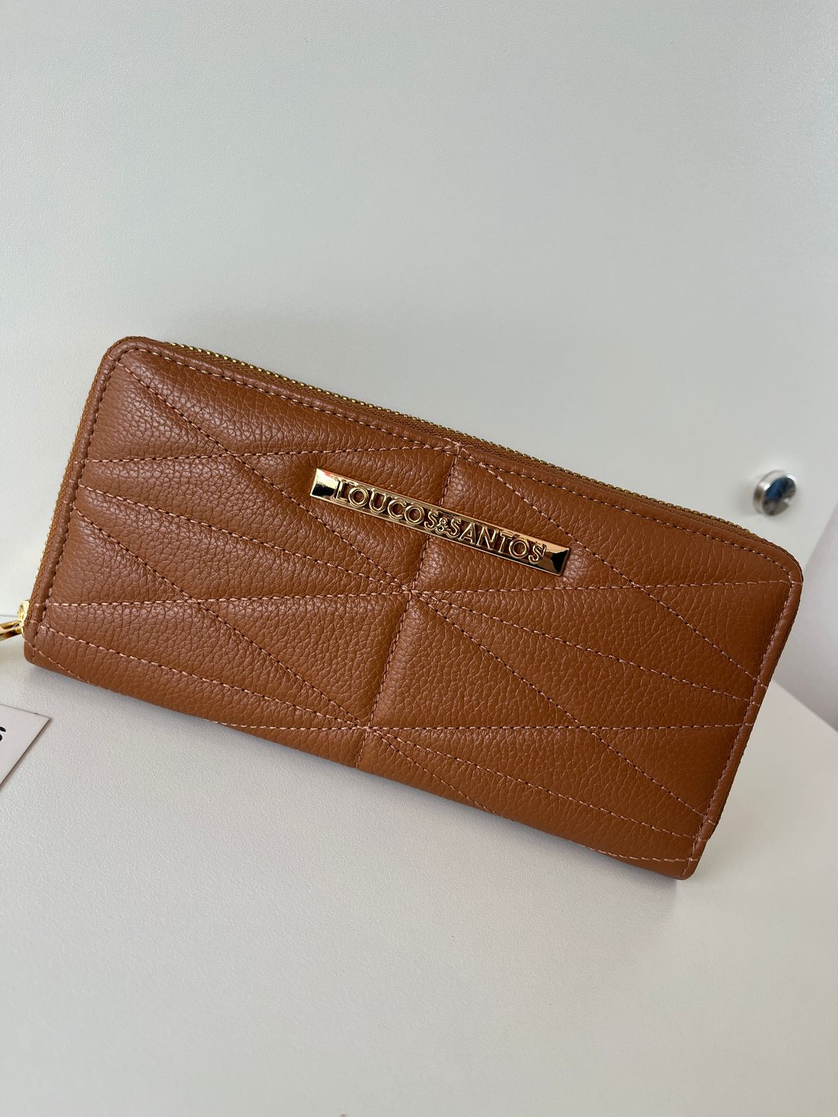 Carteira em couro, caramelo, com um ziper