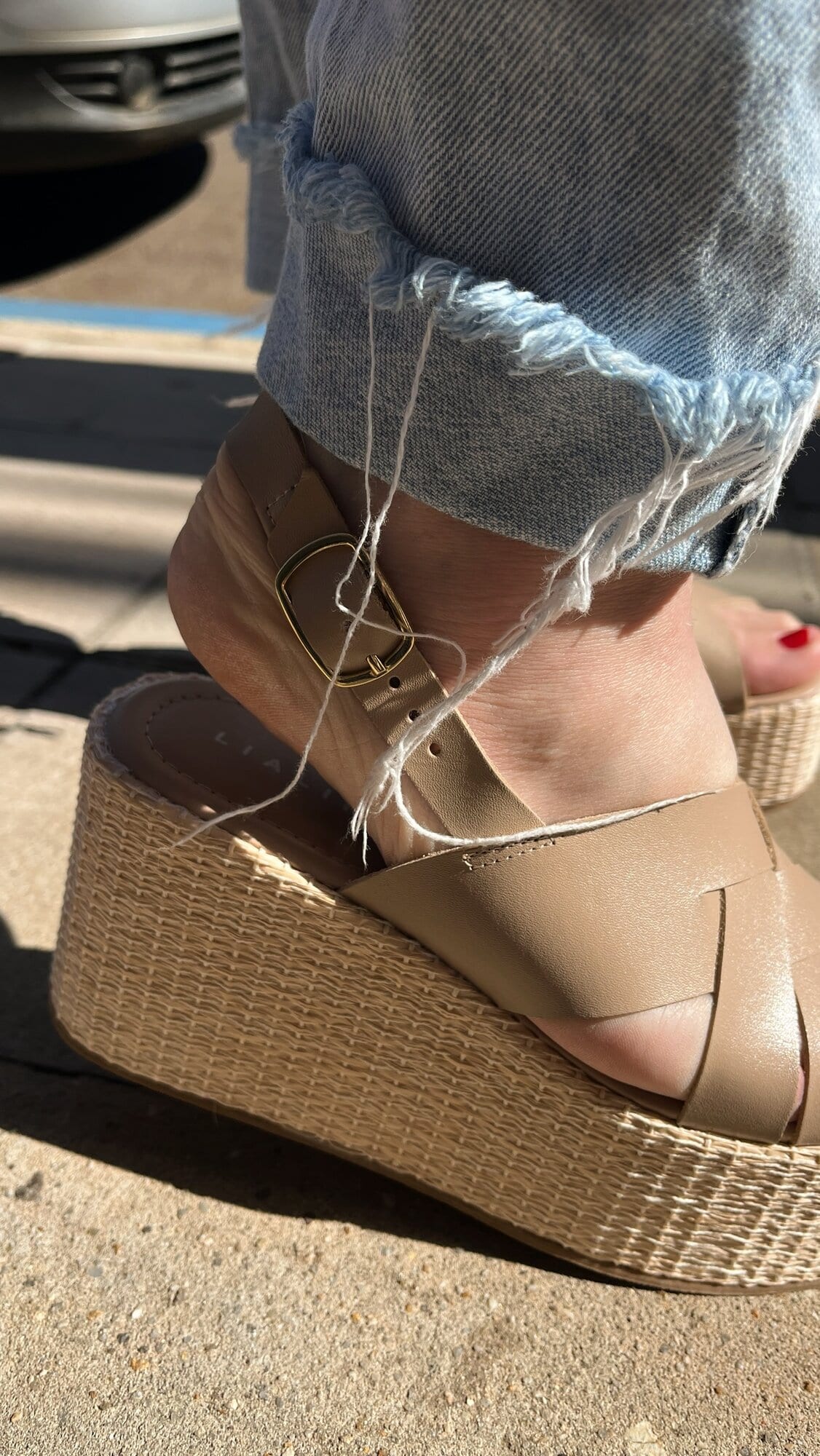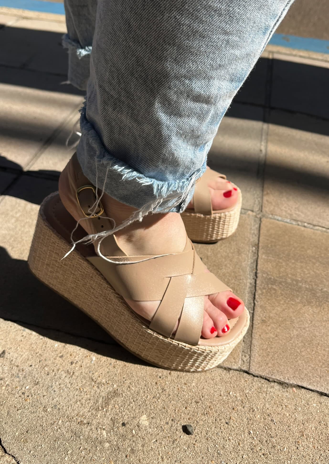 Sandália plataforma, 9cm. Com tiras em couro nude. Super leve.